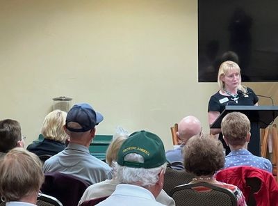 Guest speaker, Dan Habinek and Tiffany Massie from the Golden Ranch Fire Department.
